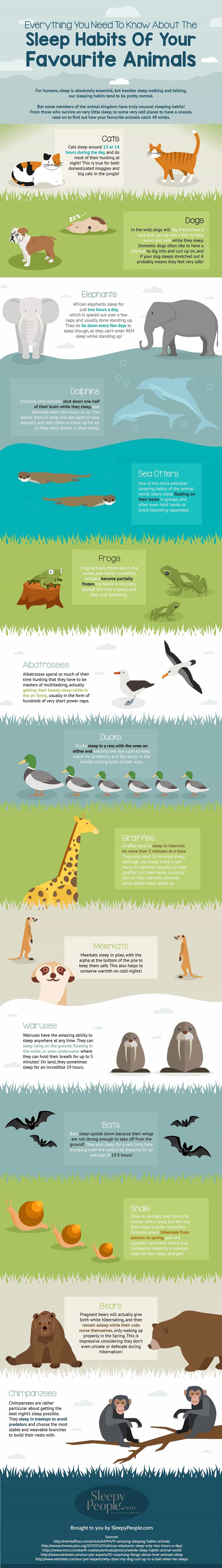 A new infographic, created by sleepypeople.com, presents lots of weird and wonderful sleeping habits of animals, from a house cats to giraffes.