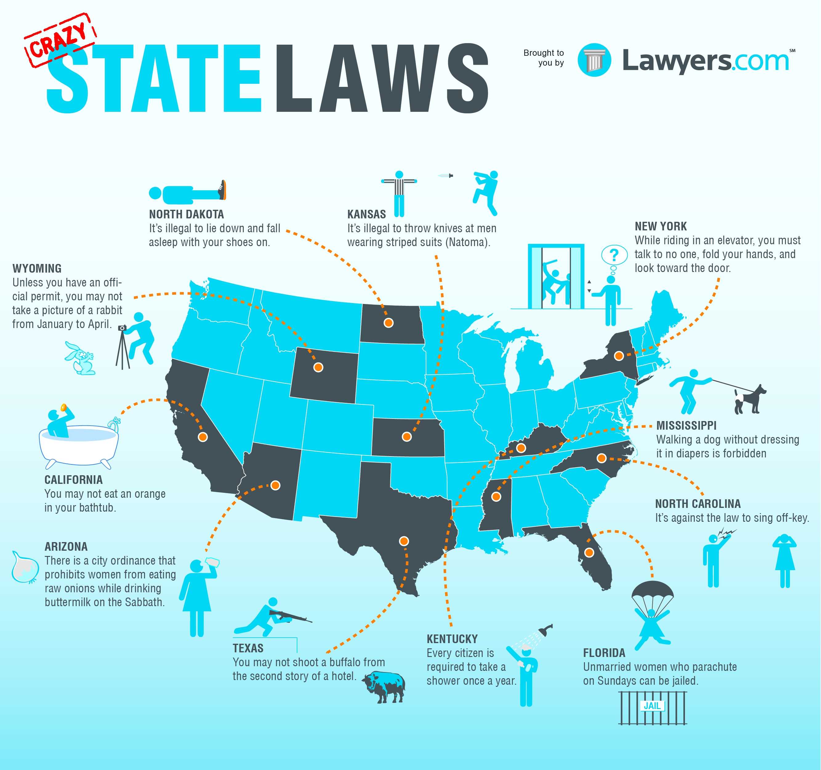 Here is an awesome infographic which gives eleven absolutely bizarre laws from around the United States, which are still in place today.