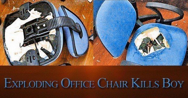 A 14-year-old boy in China was killed when his chair exploded, which sent large pieces of metal into his rectum.