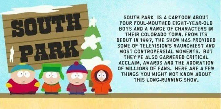 Here we have an interesting infographic about South Park, a cartoon about four foul-mouthed eight-year-old boys from a small Colorado Town.