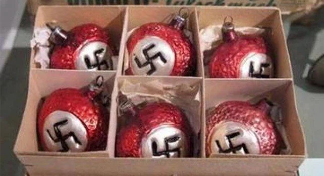 Rita, the woman who put together the display started searching markets in the 1970s looking for her childhood Christmas and she found boxes of Nazi-era Christmas decorations full with grenades and swastikas.