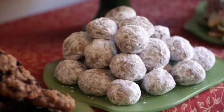 You can make pfeffernüsse by mixing sweetener with butter, then combining flour with dry spices before bringing it all together. Leave the mixture in the refrigerator, then bake in the oven. Once finished, dust the cookies with powdered sugar.