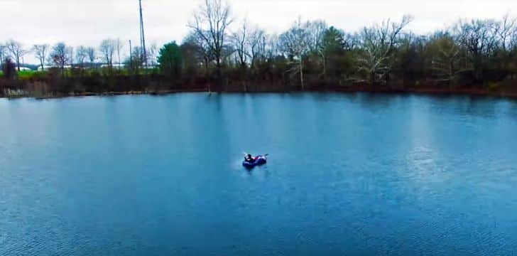 You can see that in a ring around his boat is calm water in an expansive circle.