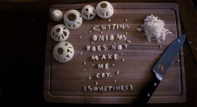 Chewing gum is another way of reducing the risk of crying, although personally I think the best way is to simply wear goggles; you might look like a bit of an idiot wearing goggles in a kitchen though.